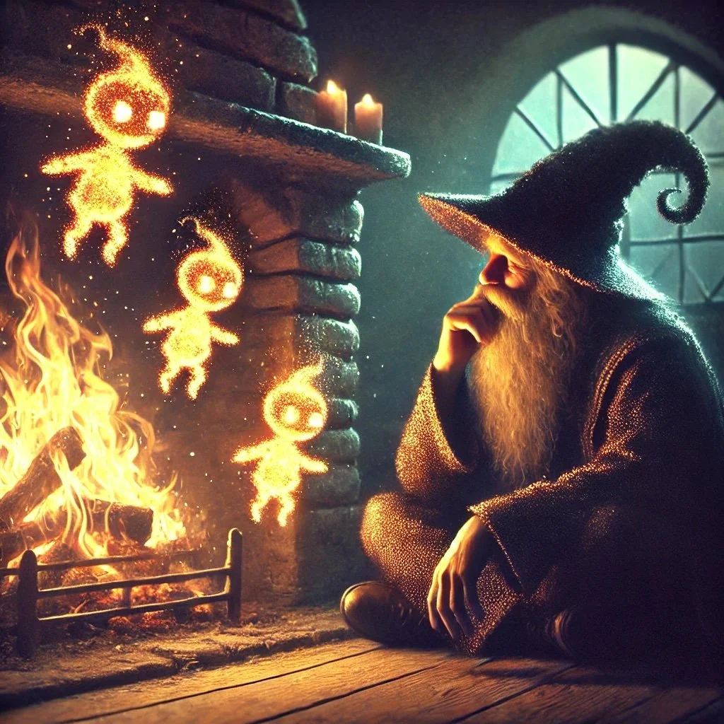 I had been sitting by my hearth, lost in thought, when the flames began to flicker in an unnatural way. The fire shifted, not with the random dance of burning wood, but as if it were alive—alive in a way I had never seen before. And then, before my eyes, three small figures emerged from the flames—sprites, each one no larger than my hand, their bodies made of flickering firelight, their eyes glowing with mischievous glee.