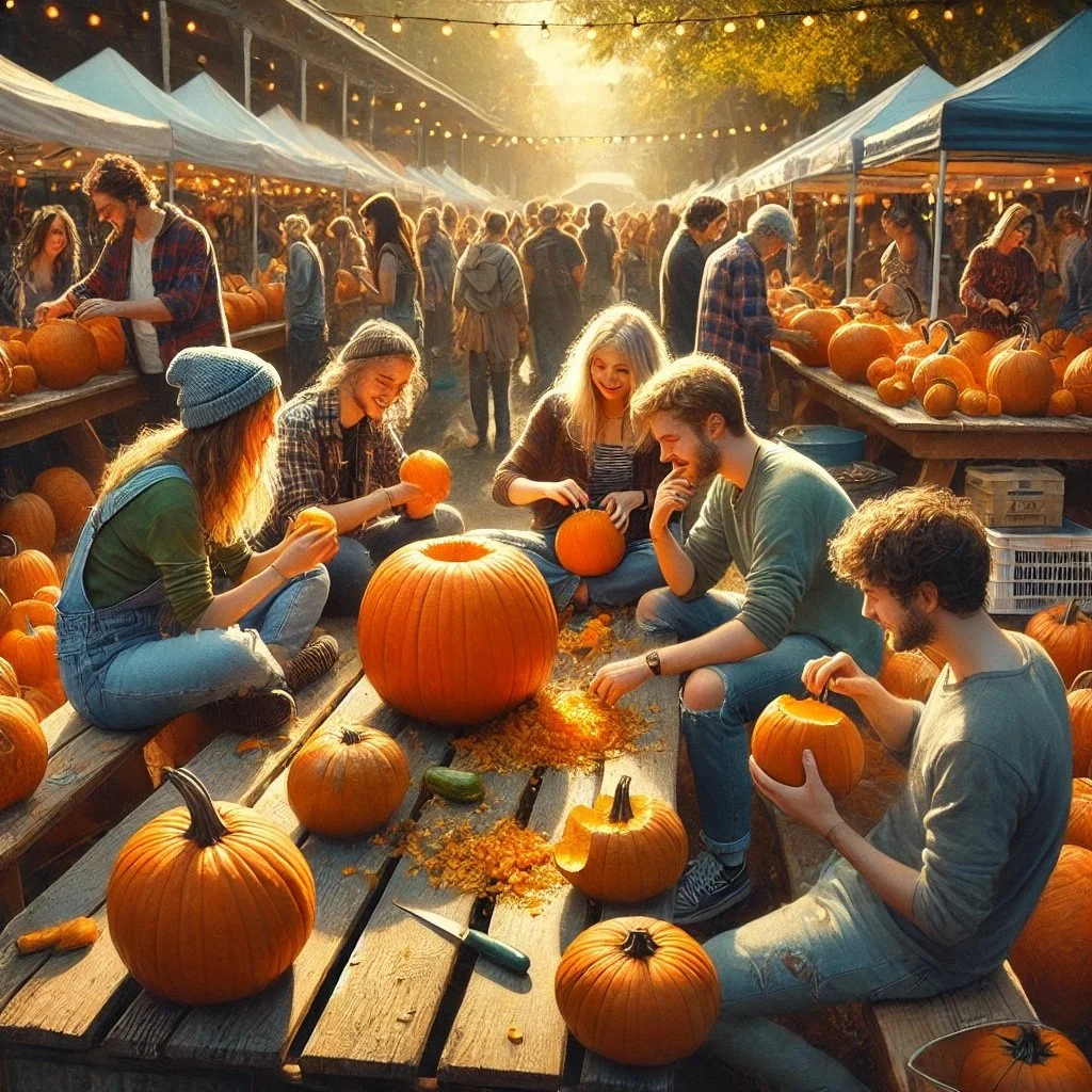 Later that week, I visited the Bremerton Community Farmers Market. The air was crisp with the scent of autumn, and pumpkins of every size and shape were scattered across tables, waiting to be carved into grinning jack-o’-lanterns. I joined a group of friends who were busy carving their pumpkins, their hands stained with pumpkin pulp as they laughed and shared stories.
