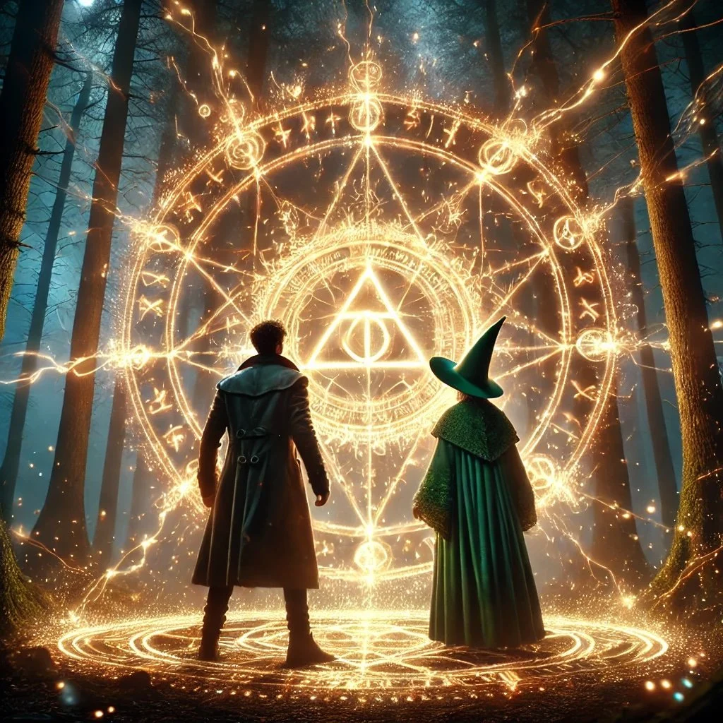 We began the incantation, our voices blending in harmonic resonance. The sigil beneath us began to glow softly, the symbols pulsing with energy. A gentle wind swirled around us, lifting leaves and filling the air with the scent of distant places.